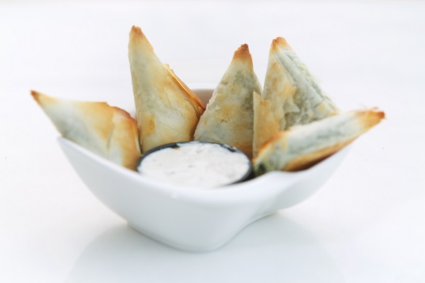 5 Pcs, Filo pastry with spinach and feta cheese.