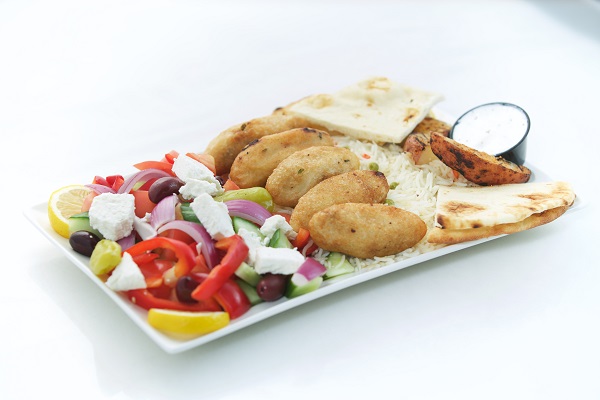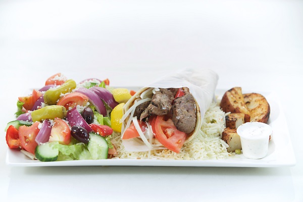 One Pita sandwich of your choice, a sald of your choice, rice pilaf, roasted potatoes, taztziki dip and pita bread, baklava & pop