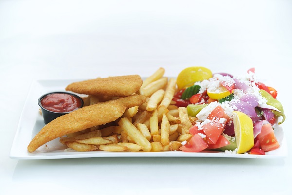 Three fingers, ten zucchini sticks, onion rings, fries & gravy.