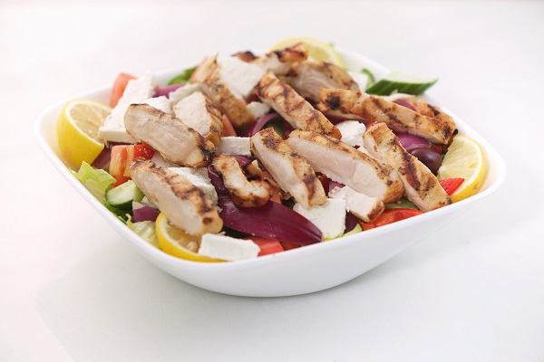 Fresh romaine lettuce, tomatoes, red onions, English cucumbers, green peppers, radishes, bell peppers, kalamata olives & feta cheese, topped with oregano & our Greek to Go dressing