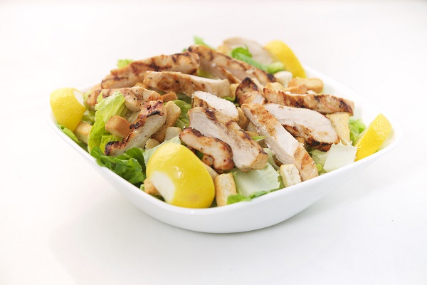 Strips of chicken, fresh lettuce, croutons, bacon bits & parmesan cheese mixed with Caesar dressing
