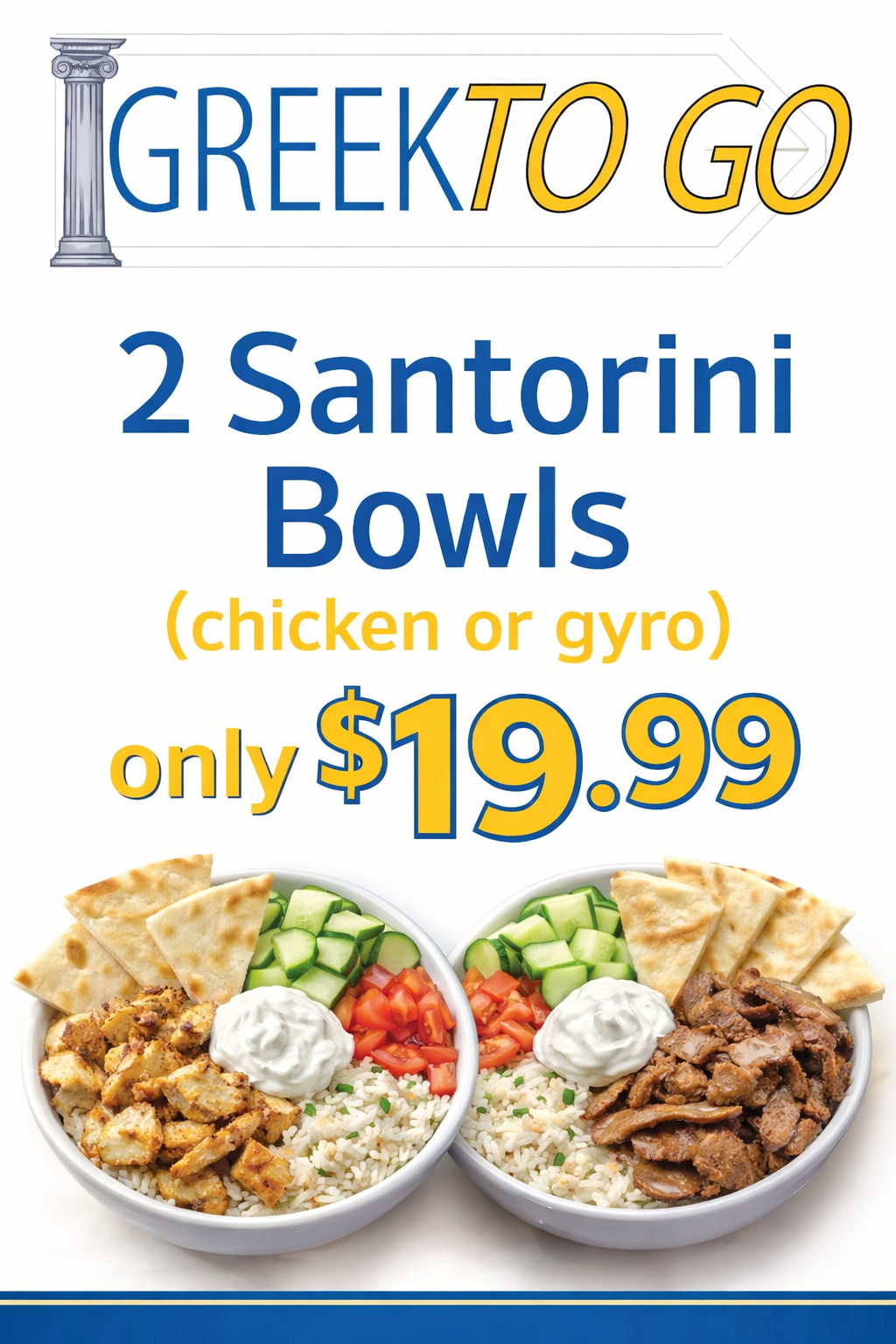 2 chicken Santorini bowl for 24.99 save $6